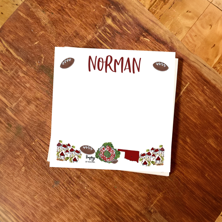 Jot down your notes on this cute Norman notepad! Makes a great gift! Measures 5"x5" and contains 100 pages.