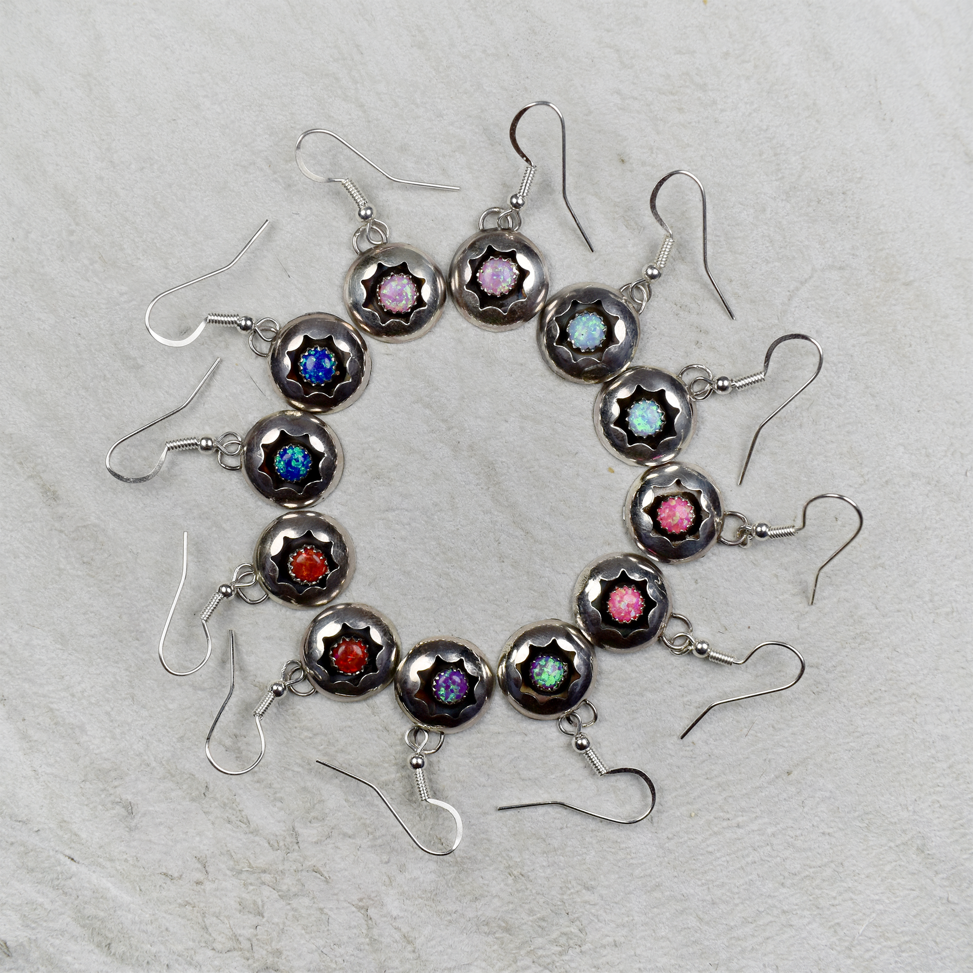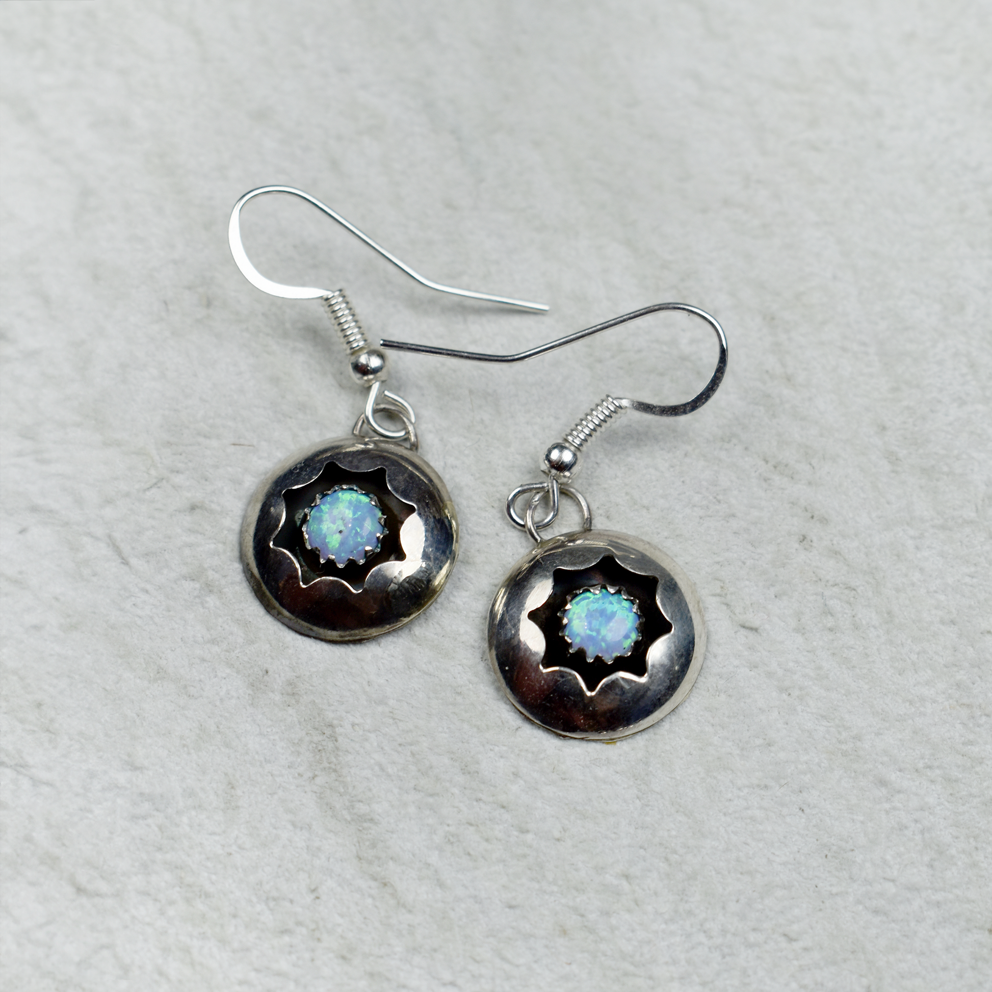 Discover the elegant Opal circular shadowbox dangle earrings by Janice Spencer. These unique earrings feature beautiful opal stones set in a sterling silver circular shadowbox design. Handcrafted with care, these earrings are a perfect statement piece for any occasion. Add a touch of sophistication to your jewelry collection today.