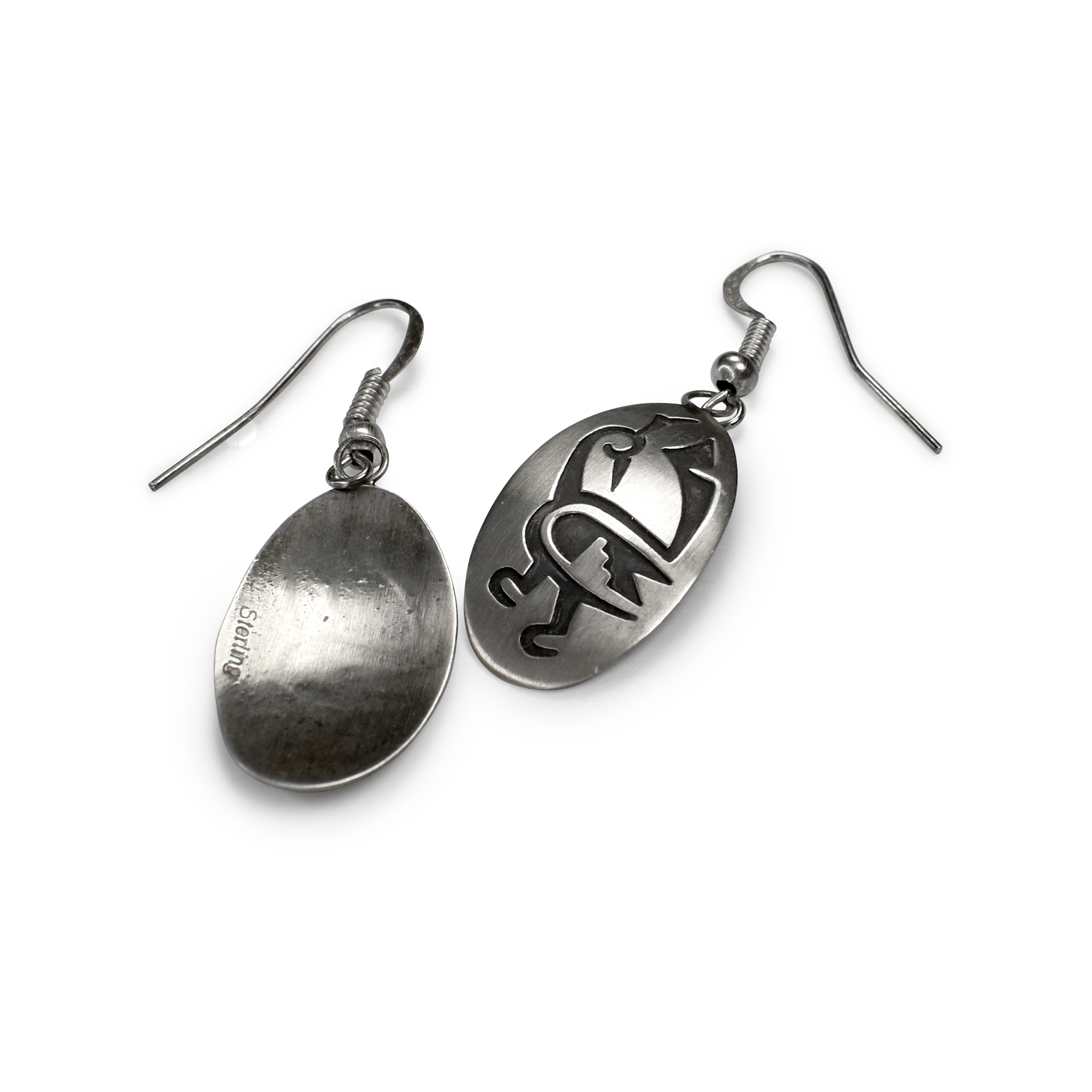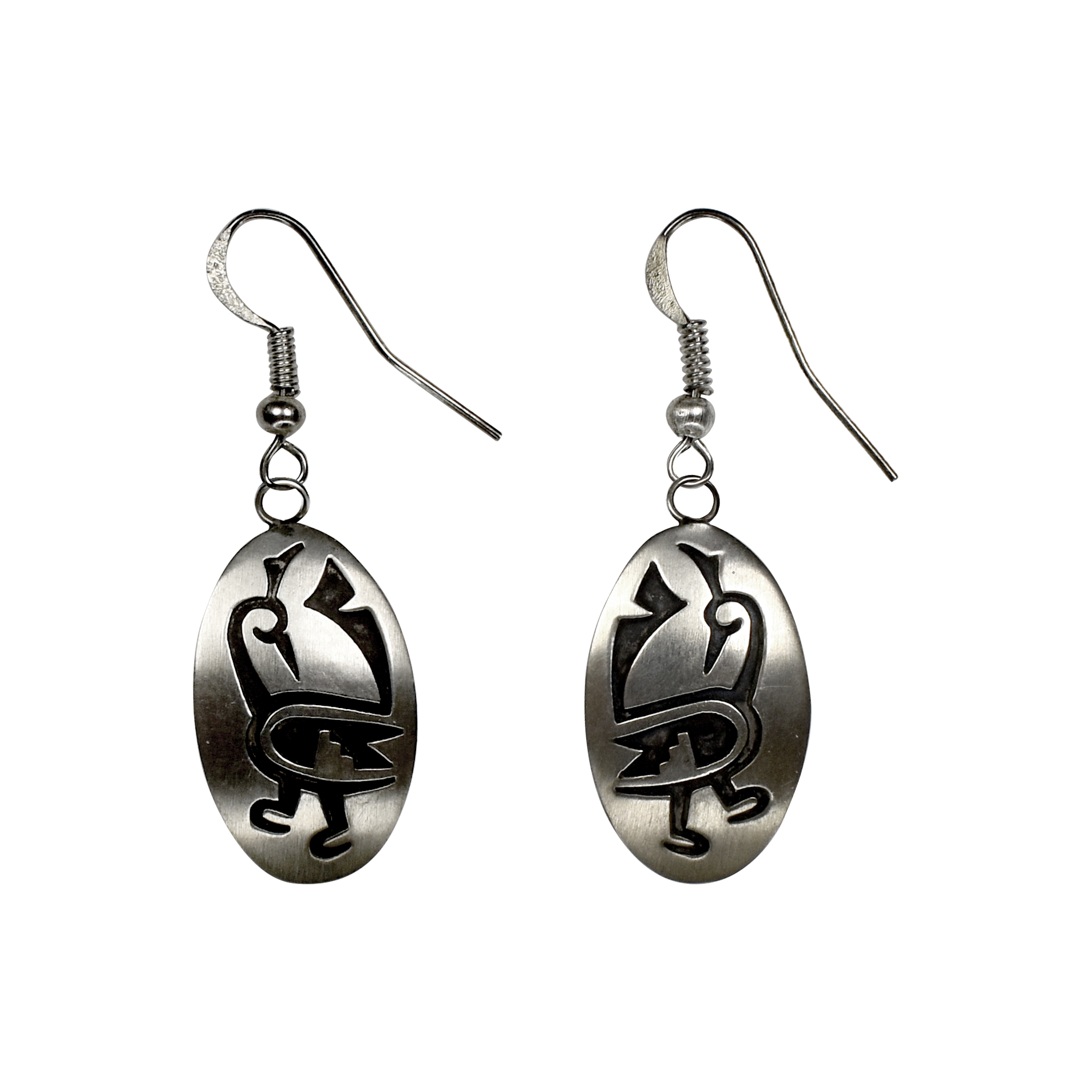 Celebrate classic Southwestern charm with these sterling silver quail earrings, crafted with a clean, modern silhouette cut directly into each oval drop. The recessed areas are oxidized to create rich black contrast, making the quail design stand out with striking clarity. This technique gives the look of traditional Native American “overlay-style” jewelry, but in a single pierced layer of silver — a refined, contemporary interpretation of a beloved regional motif.