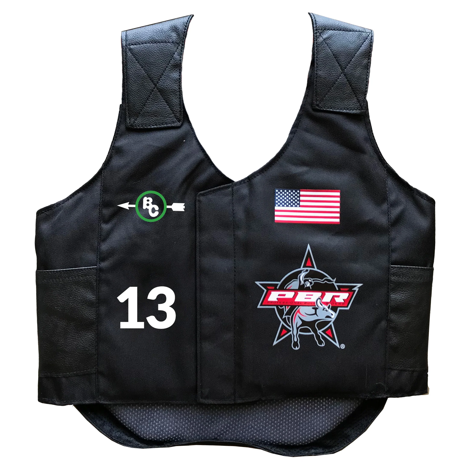 Our PBR Rider Vest is designed to look just like the one real Professional Bull Riders wear! Whether your little one is watching a PBR event or just playing around the house, our vest is a fun dress up piece for kids that dream of being a Professional Bull Rider one day. Our PBR Rider Vest was created with growing kids in mind. These vest are assembled with velcro shoulder straps and waist straps so it can grow as your little one grows.