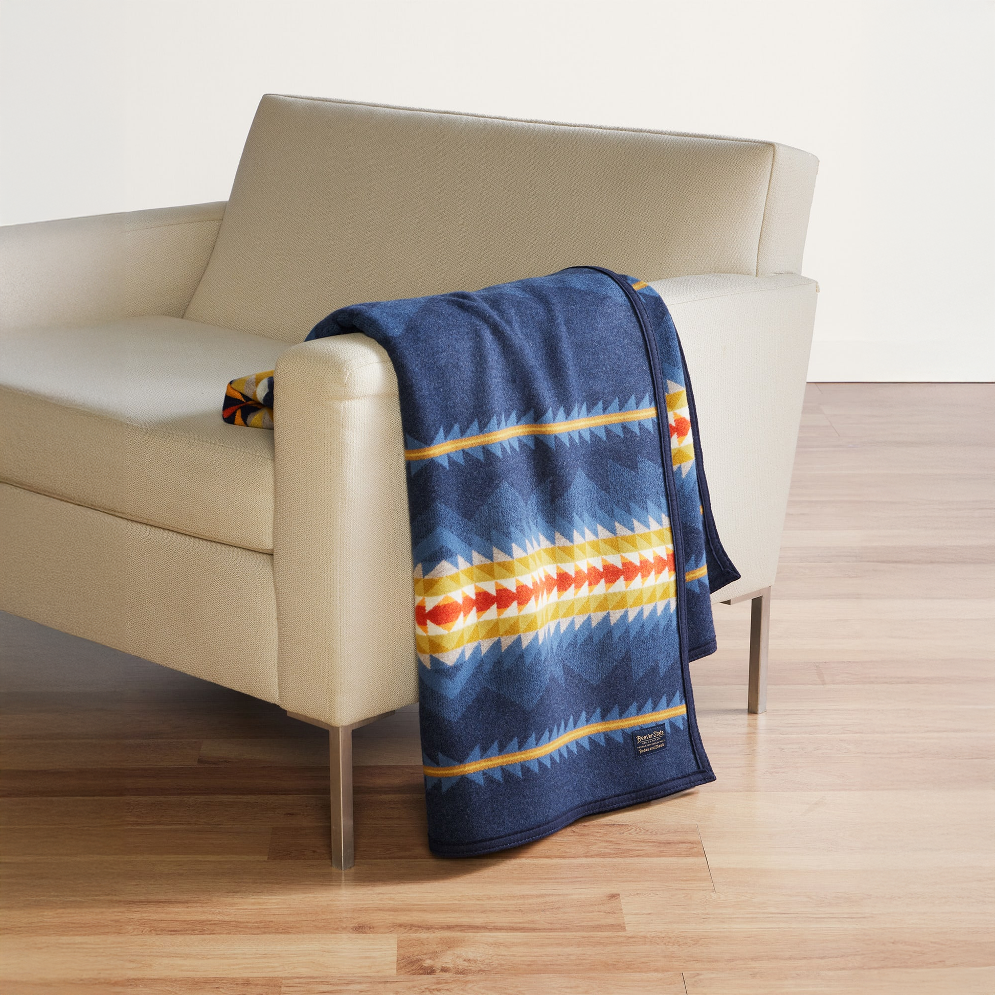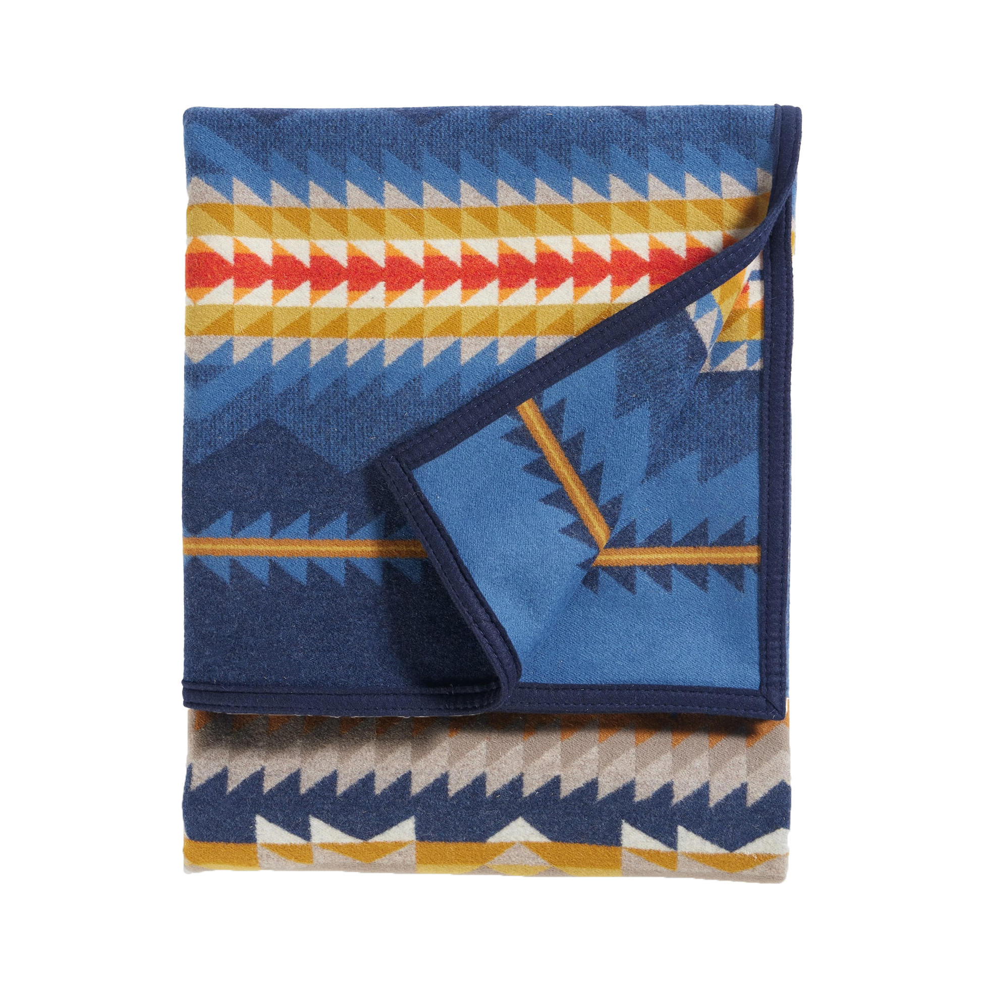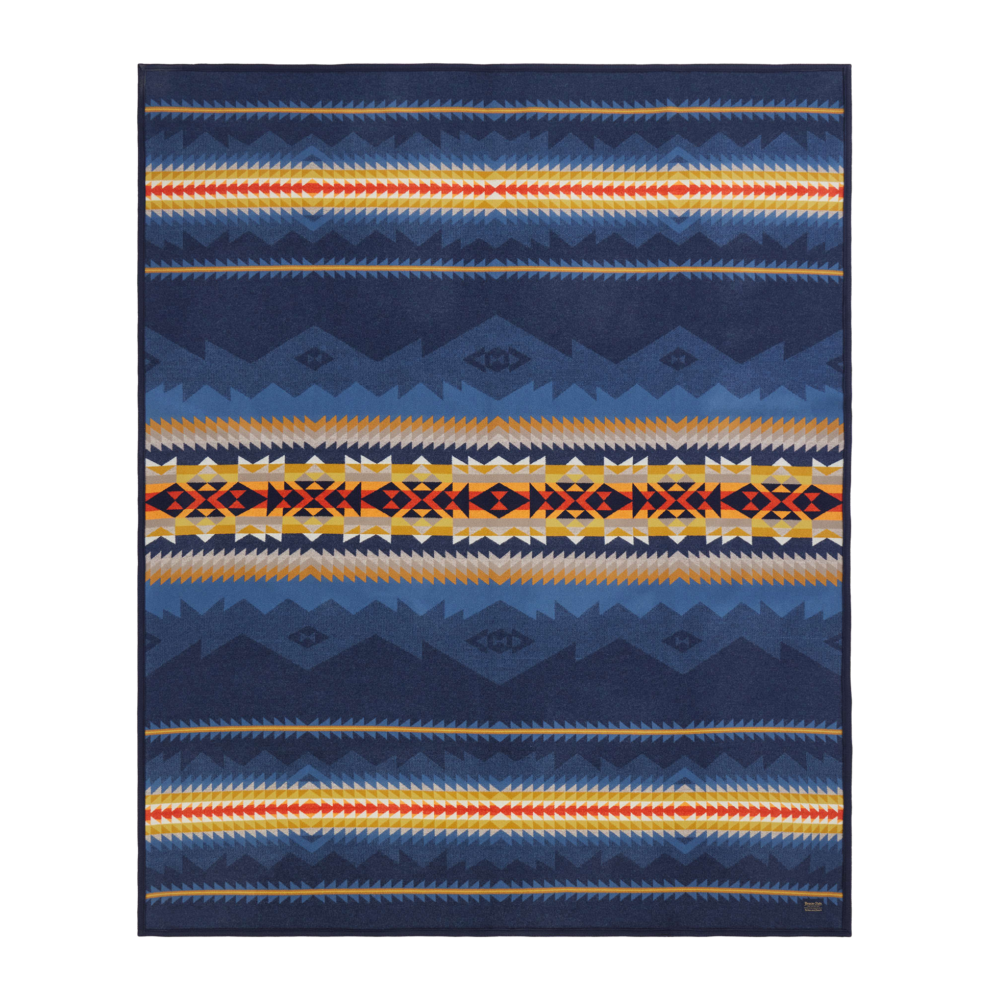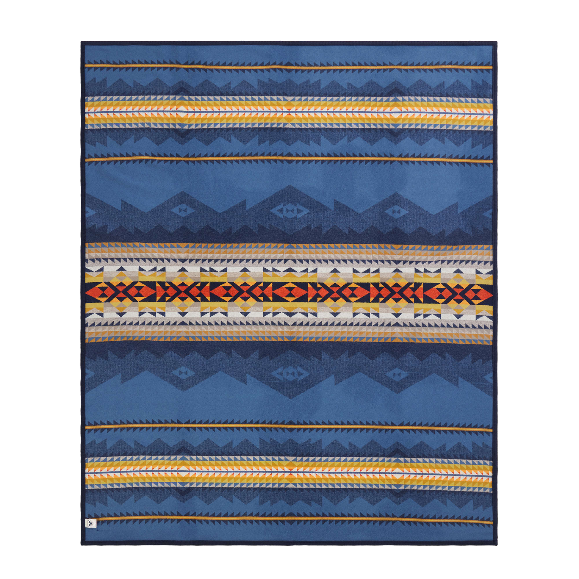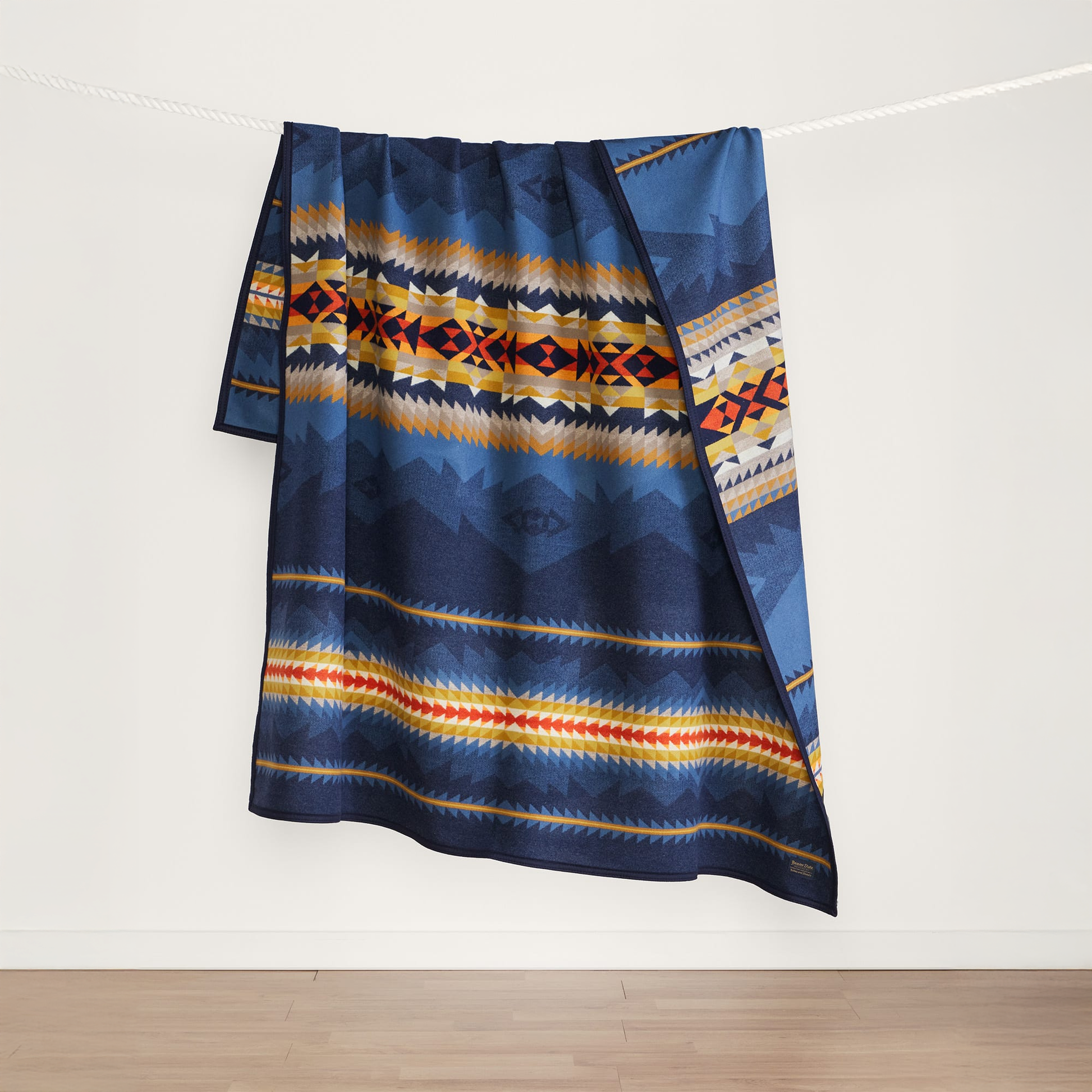 Fields of wildflowers are banded by peaks that represent the mountains of the Cascade Volcanic Arc. Also known as Cascadia, this range stretches from Lassen Peak in California, to the Silverthrone Caldera in British Columbia, Canada. The towering snow-capped peaks include Mount Hood and Mount Rainier in the Pacific Northwest. The center band represents the floral bounty that blooms in the rich volcanic soil near these dormant volcanoes: coreopsis, marigolds, poppies, and so many more.