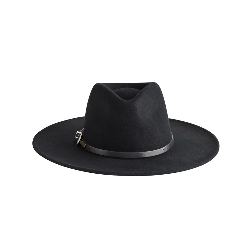 This cozy wool hat features classic western styling, with a faux leather belt buckle strap that is right at home on open rangelands and tree-lined trails.