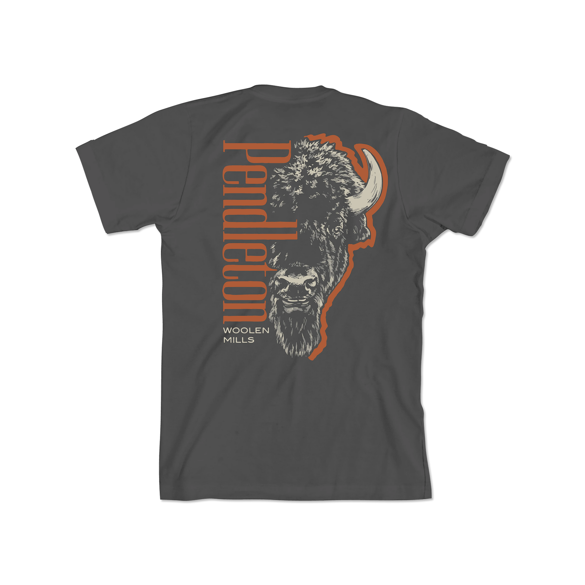 This cotton tee showcases a vintage-inspired rust and cream colored Pendleton logo on the front, with a large back graphic nodding to their Western heritage. Soft jersey knit with a crewneck and a relaxed fit for easy everyday wear.