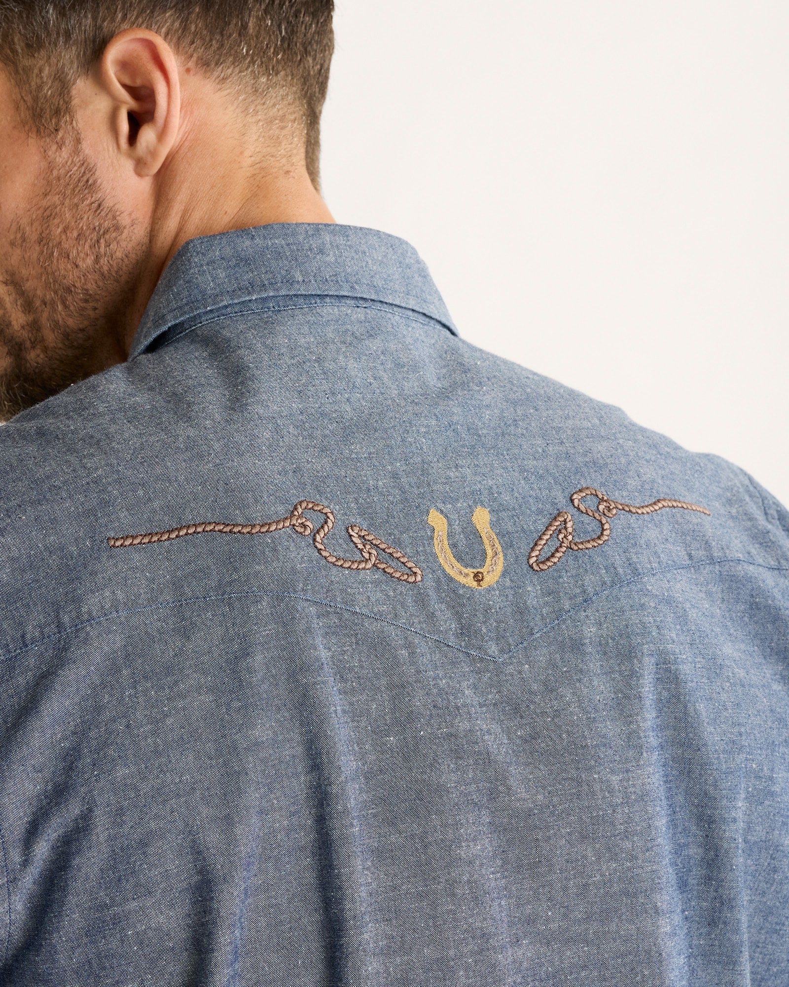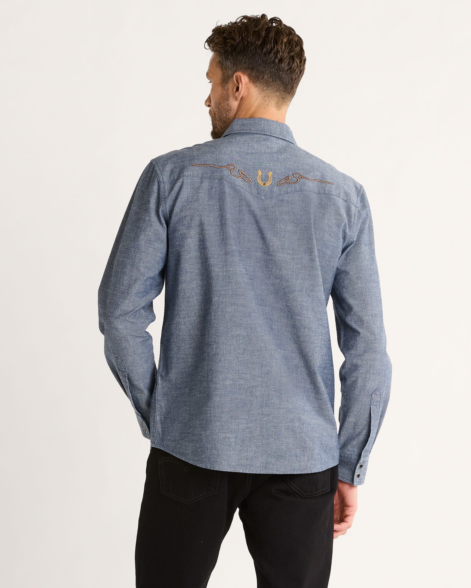 Inspired by Pendleton's archives, this shirt features peaked front and back western yokes with embroidery, angled Gambler pockets with snap flaps, and premium snap closures. Made from 100% cotton soft-washed denim.