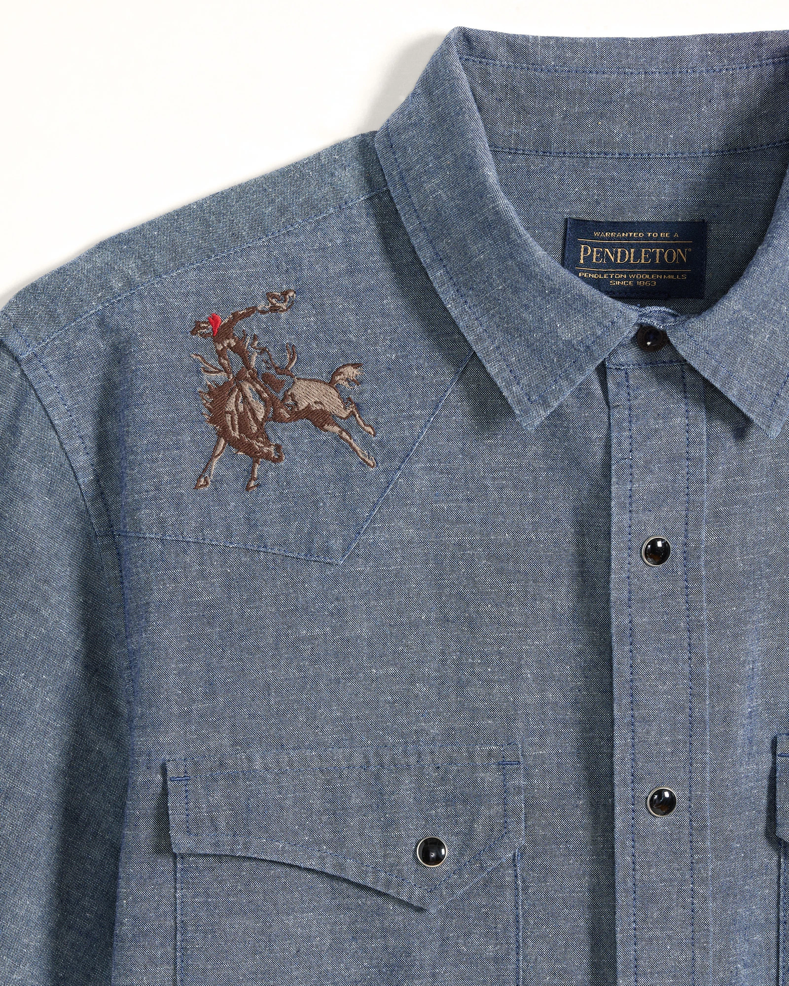 Pendleton Men's Rodeo Embroidered Chambray Gambler Shirt - Dark Blue/Rodeo