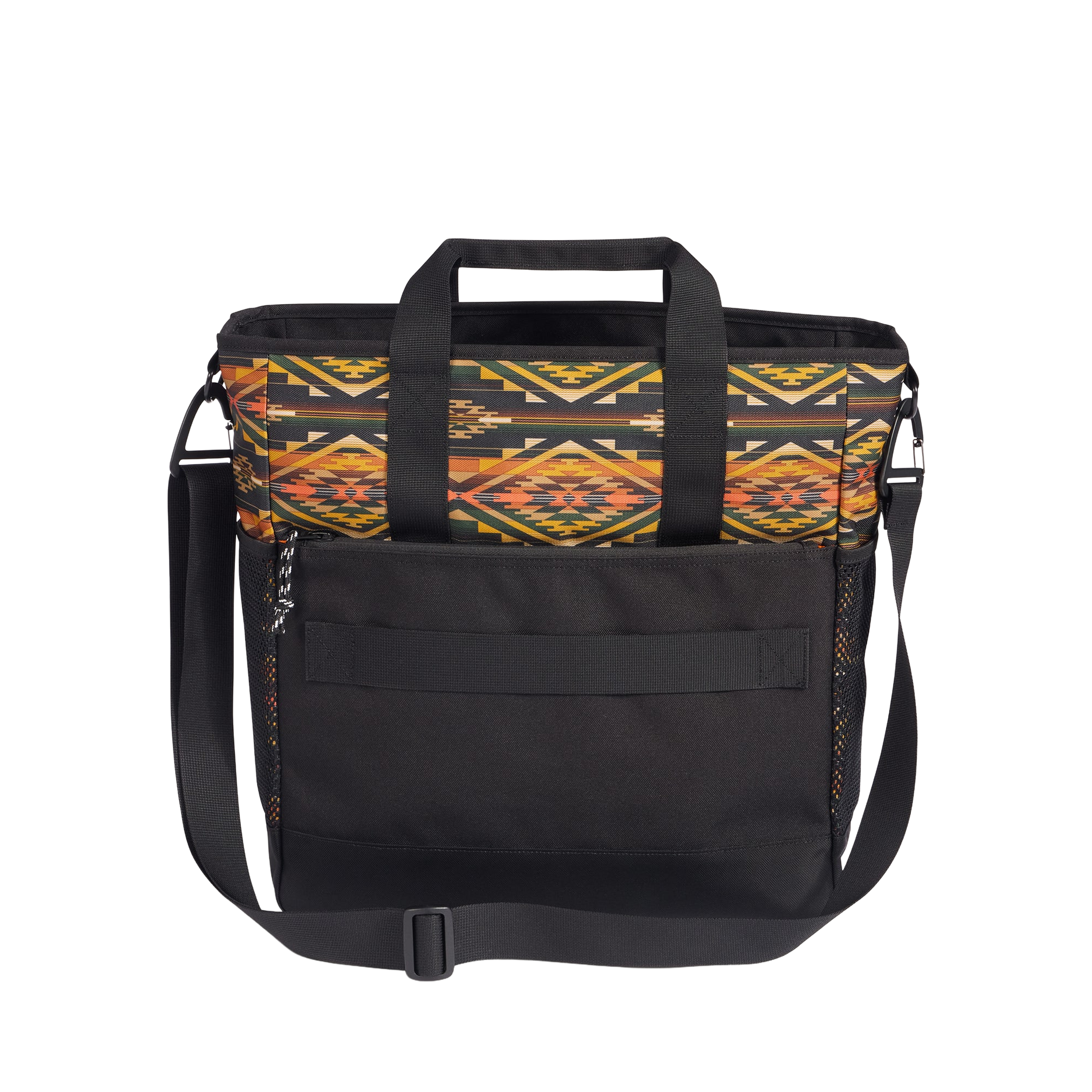 Part of Pendleton's Explorer Collection, this versatile tote bag is ideal for everyday travel or around-town errands. Crafted from rugged polyester with pattern-printed accents, it features a top zipper closure, a front and back zip pockets with back trolley carrier strap. Side bottle holders, and interior compartments keep essentials in place, while top handles and an adjustable shoulder strap offer hands-free or hand-carry convenience. Ideal for a commuter tote, travel bag, or everyday shopper.