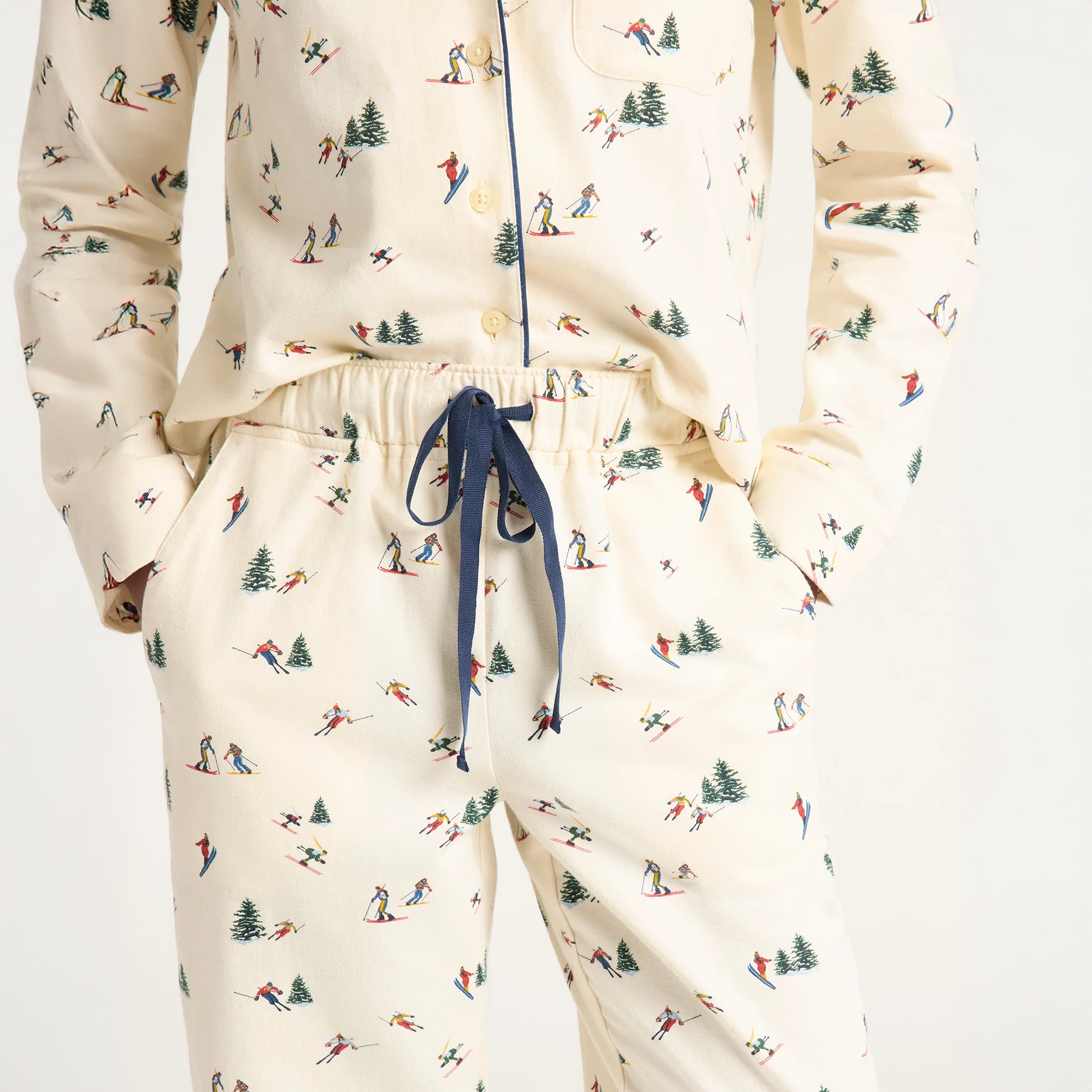 Crafted from brushed cotton flannel, this pajama set showcases an exclusive Pendleton ski-inspired print. The button-front top includes a notched collar and chest pocket, while the bottoms feature an adjustable drawstring waist and side seam pockets. Designed for warmth, softness, and seasonal charm.