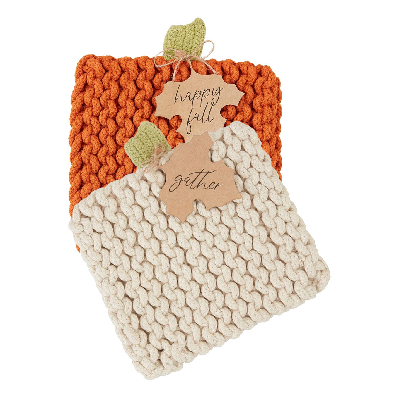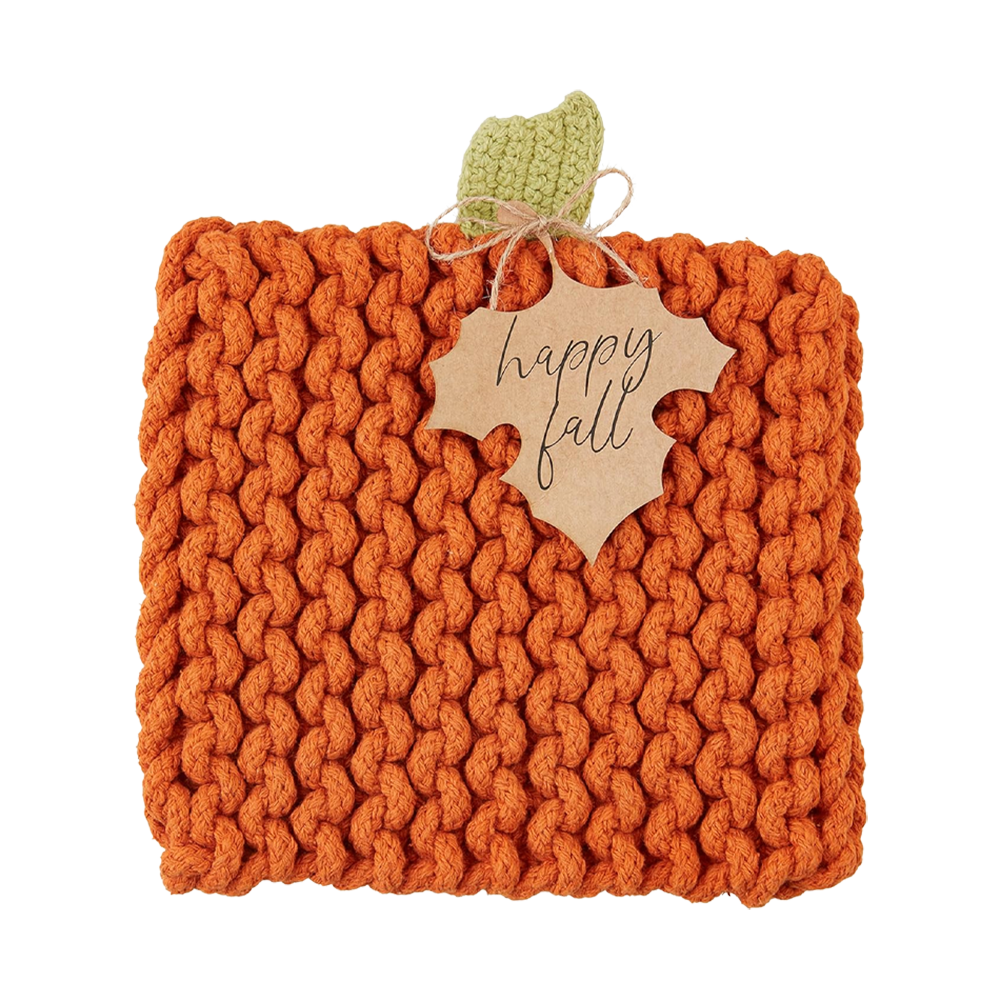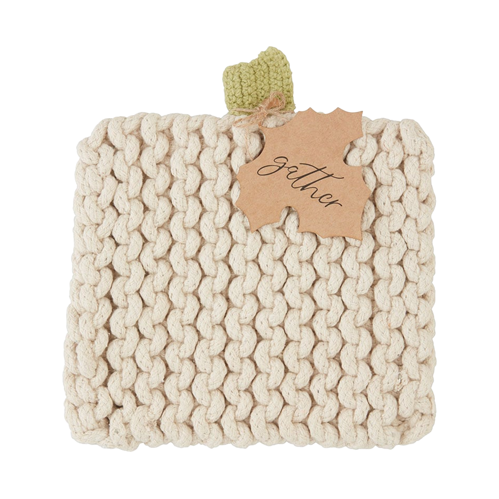 A beautifully crafted trivet made from knitted cotton rope. It is designed to protect your surfaces from heat and scratches, making it the perfect addition to your kitchen or dining table. Measuring at 9 3/4" x 8", this trivet provides ample space for placing hot pots, pans, and dishes. Its cream pumpkin color adds a touch of elegance and warmth to any space. Made from high-quality cotton, this trivet is not only durable but also easy to clean. Simply wipe it down with a damp cloth or toss it in the washing machine for a quick refresh. Whether you're hosting a dinner party or simply enjoying a cozy meal at home, the Cream Pumpkin Knit Trivet is a must-have accessory that combines functionality with style.