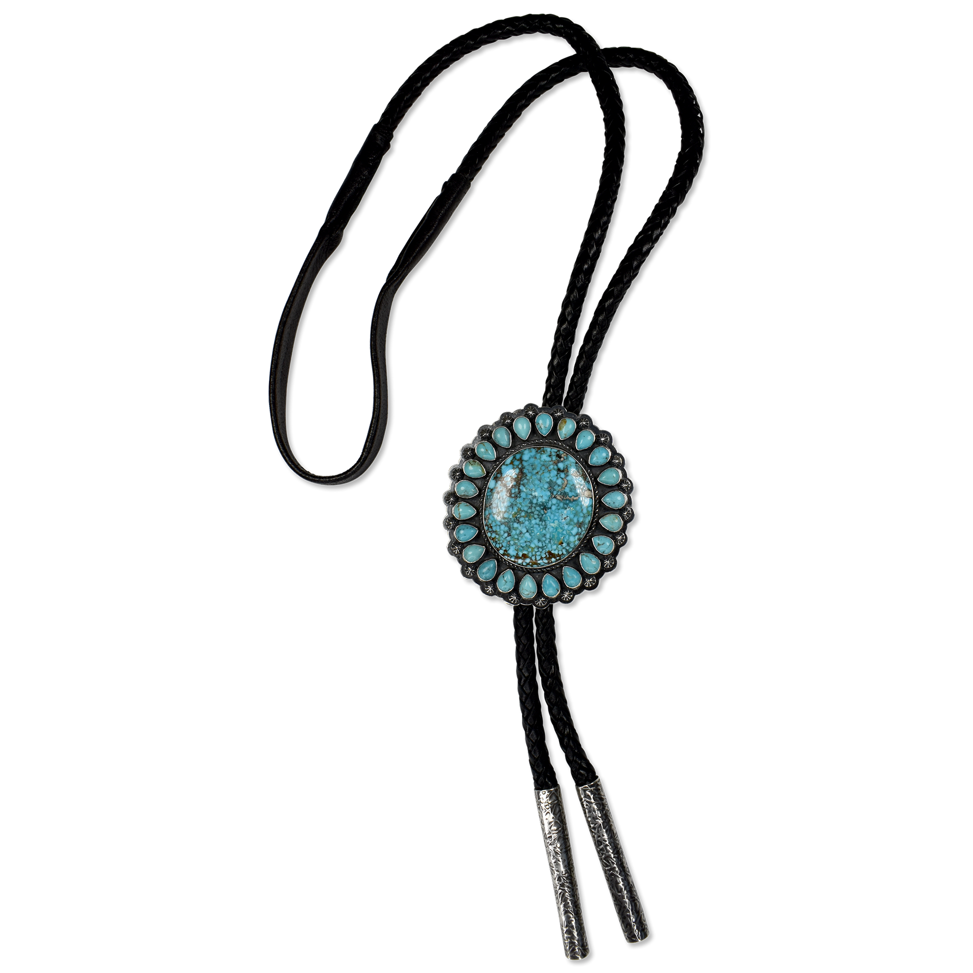 Round Kingman Turquoise Bolo with Teardrop Accent Stones by Travis Teller