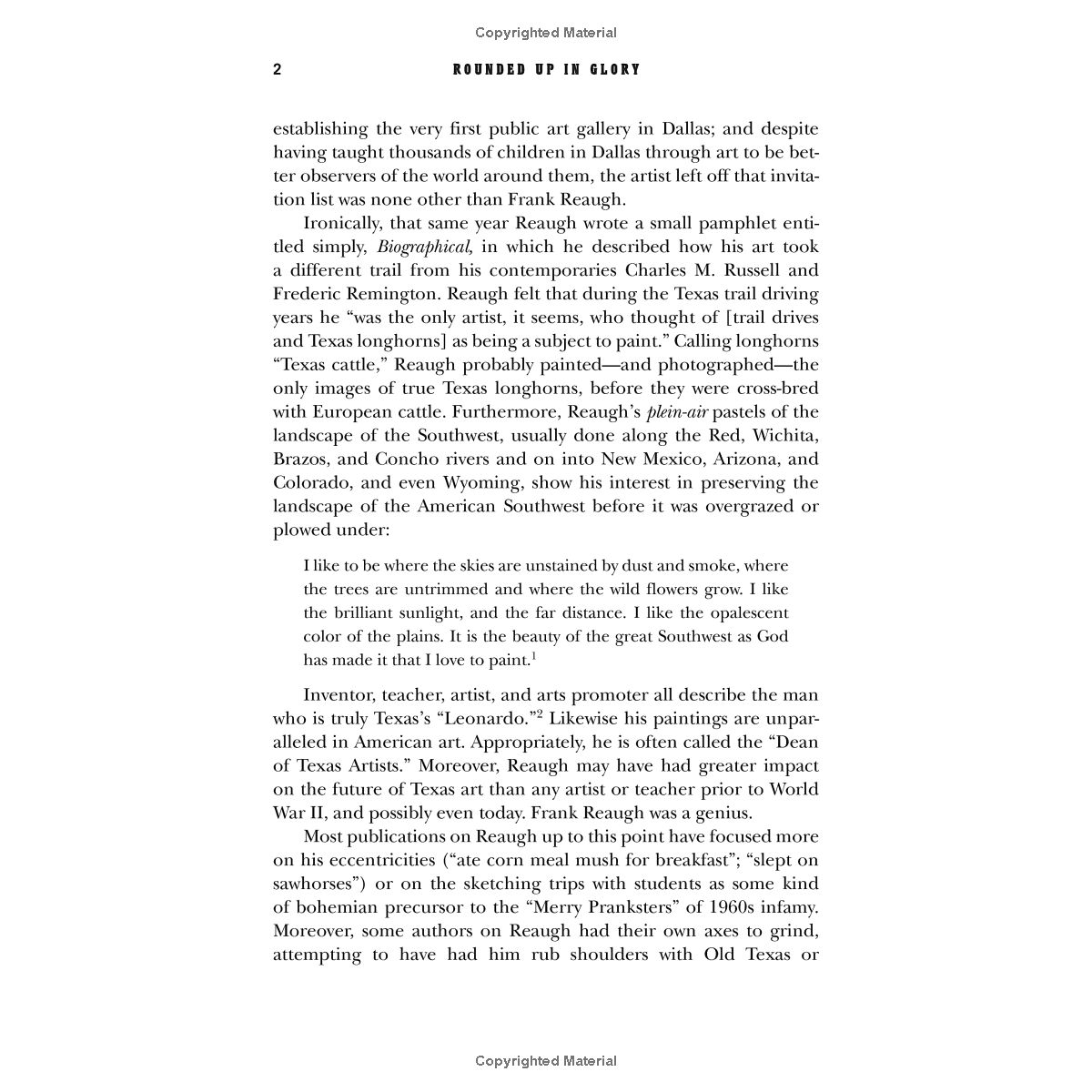 The last decade has seen a resurgence of interest in Reaugh, through gallery shows, exhibitions, and a recent documentary. Despite his importance and this growing public profile, however, Rounded Up in Glory is the first full-length biography. Michael Grauer argues for Reaugh’s importance as more than just a “longhorn painter.” Reaugh’s works and far-reaching imagination earned him a prominent place in the Texas art pantheon.