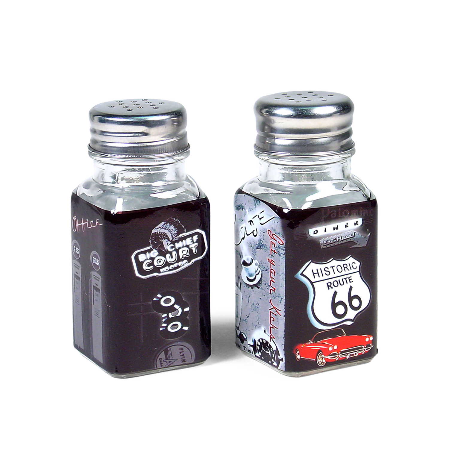 Route 66 Square Glass Salt and Pepper Shaker Set