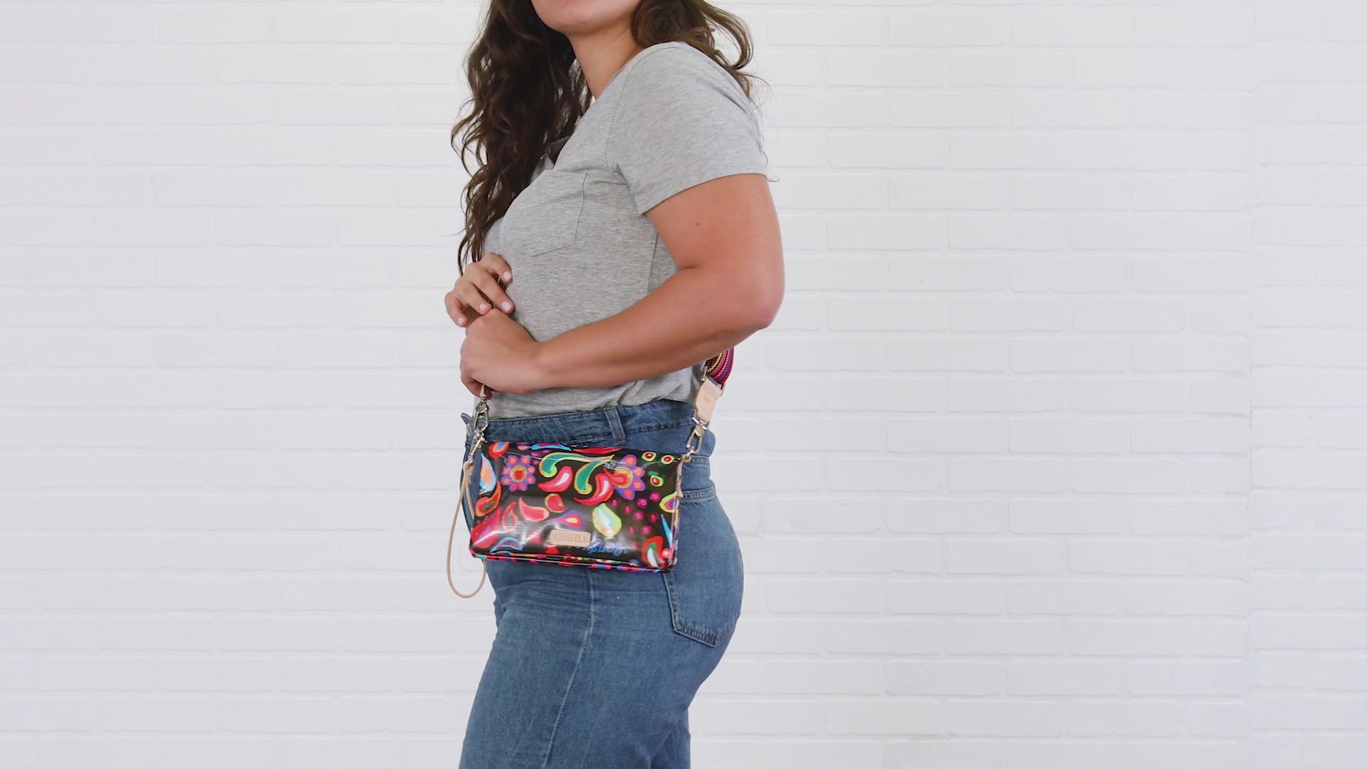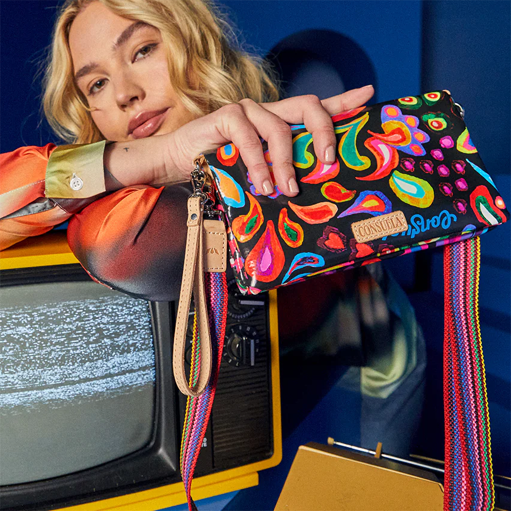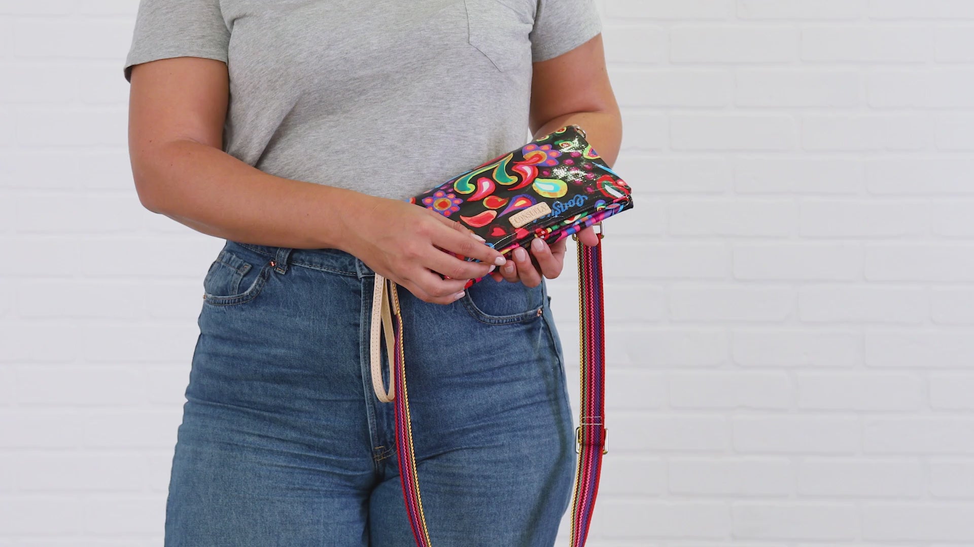Consuela dreamed up the best way to carry the good stuff with their new Uptown Crossbody in their joyful Sally pattern. Here to hang in style with three zip compartments, six card holder slots, and an included wristlet strap, this crossbody can hold the necessities and more.