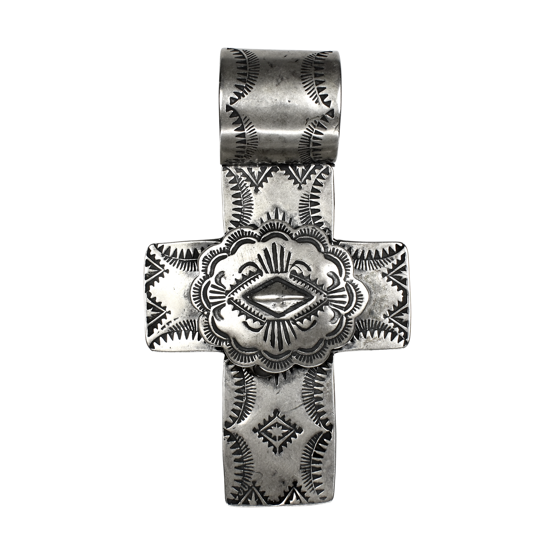 A powerful statement on a chain or leather cord, this cross pendant stands out as a centerpiece in any Southwestern jewelry collection.