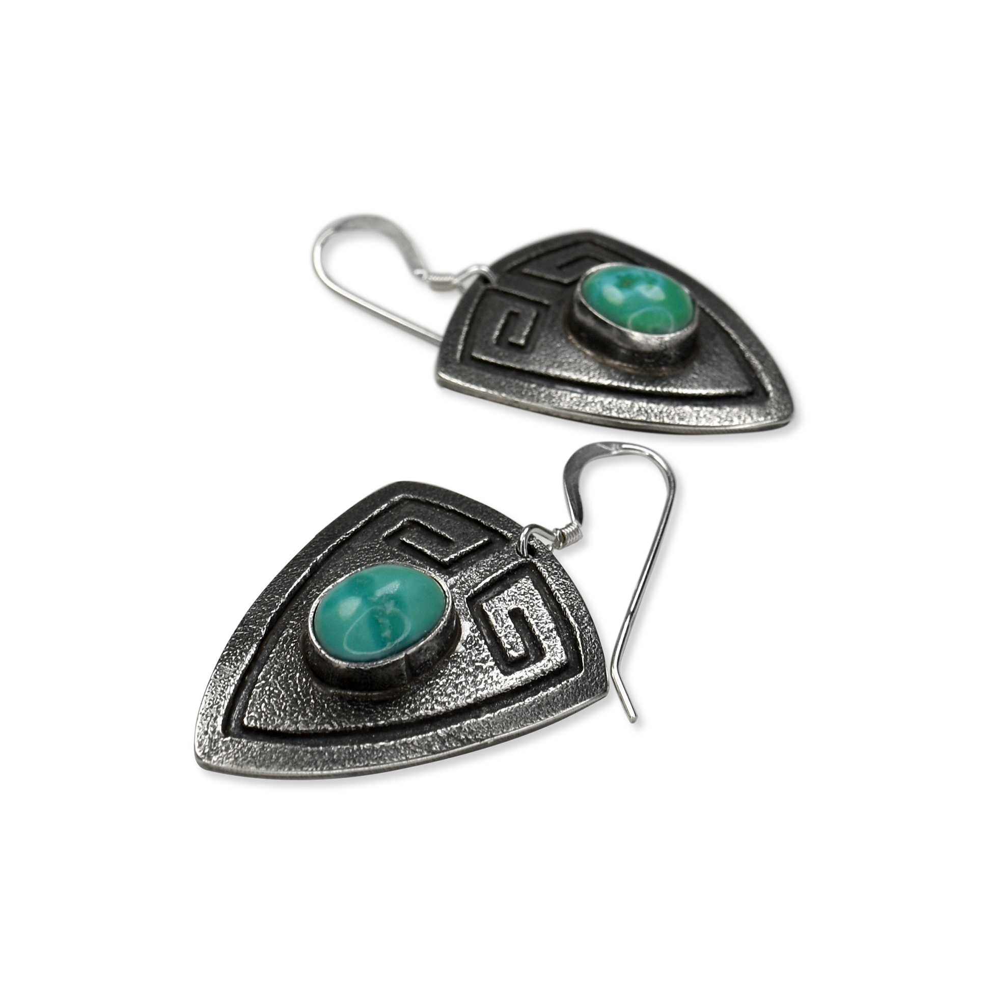 Stamped Shield Earrings with Kingman Turquoise Stone by Teller Indian Jewelry
