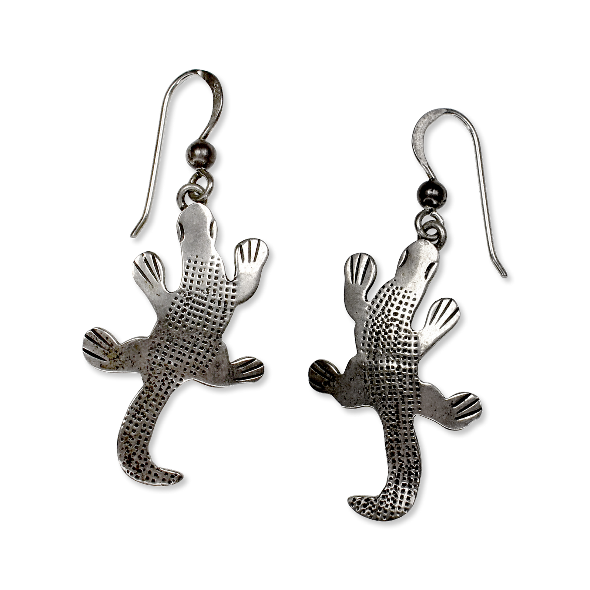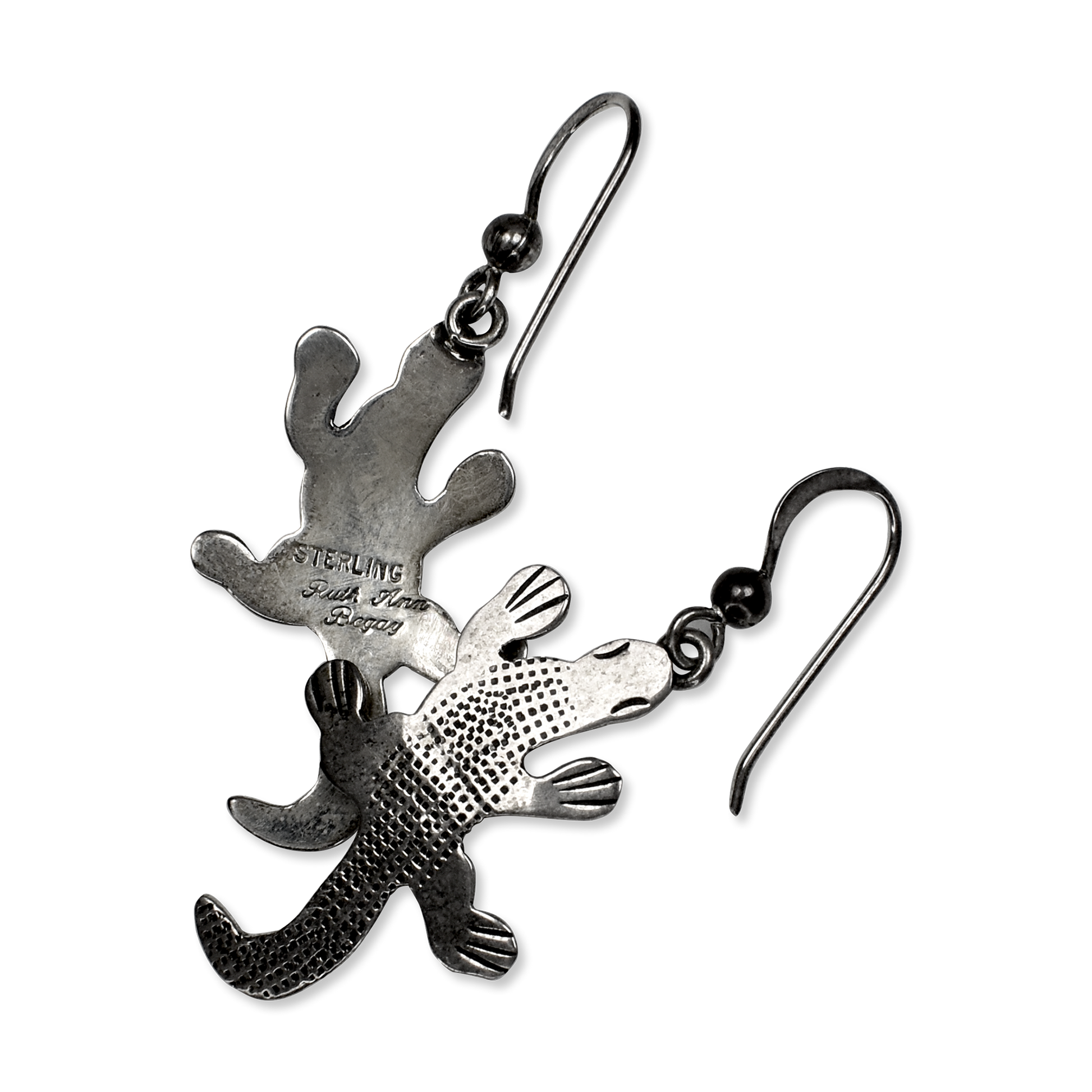 Stamped Sterling Silver Lizard Earrings by Ruth Ann Begay
