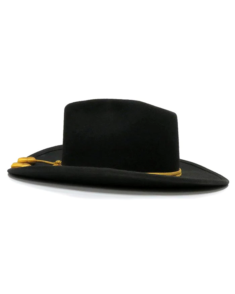 Go on and get your hands dirty with the rugged John Wayne The Fort Wool Felt Crushable Western Hat! Part of Stetson's new John Wayne Collection of westerns, The Fort Western features an aged and stained finish to achieve the look of a hard-worn hat. Designed after the hat worn by army scout Hondo Lane. An aged and distressed golden cord adorns the hat while its curved wire brim can be shaped whichever way you please. Crafted with pride in Texas, USA, this style is one you can count on for years to come!