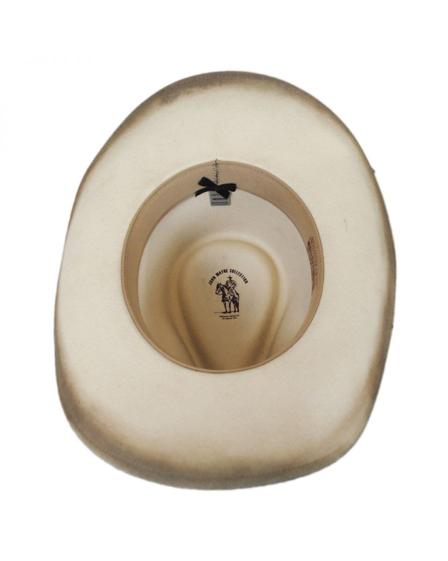 Go on and get your hands dirty with the rugged John Wayne The Fort Wool Felt Crushable Western Hat! Part of Stetson's new John Wayne Collection of westerns, The Fort Western features an aged and stained finish to achieve the look of a hard-worn hat. Designed after the hat worn by army scout Hondo Lane. An aged and distressed golden cord adorns the hat while its curved wire brim can be shaped whichever way you please. Crafted with pride in Texas, USA, this style is one you can count on for years to come!