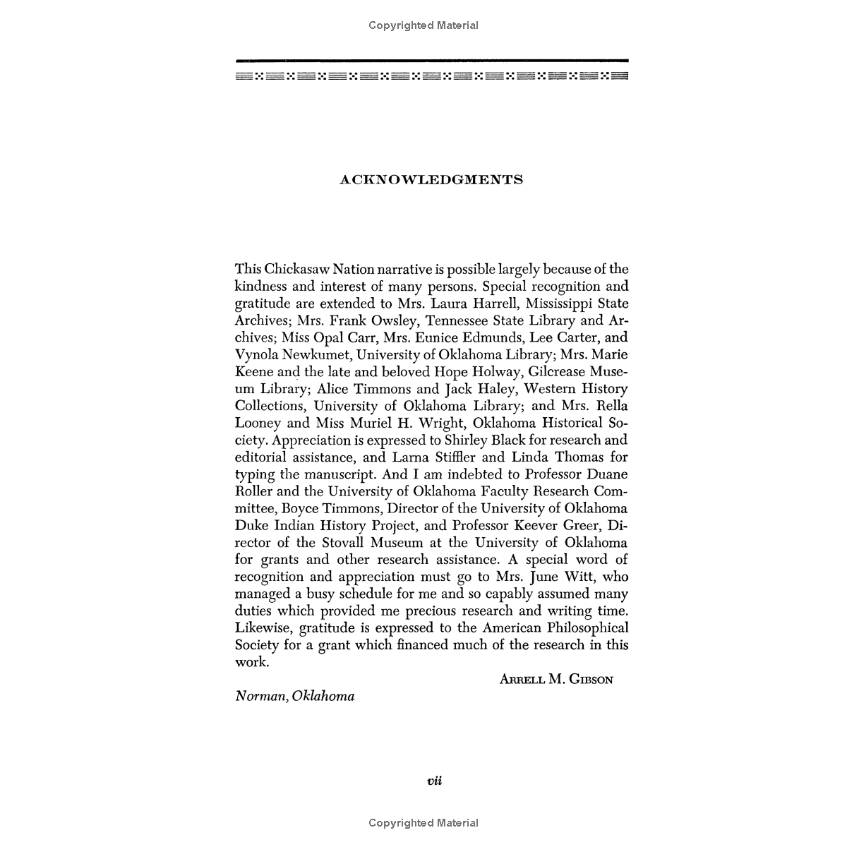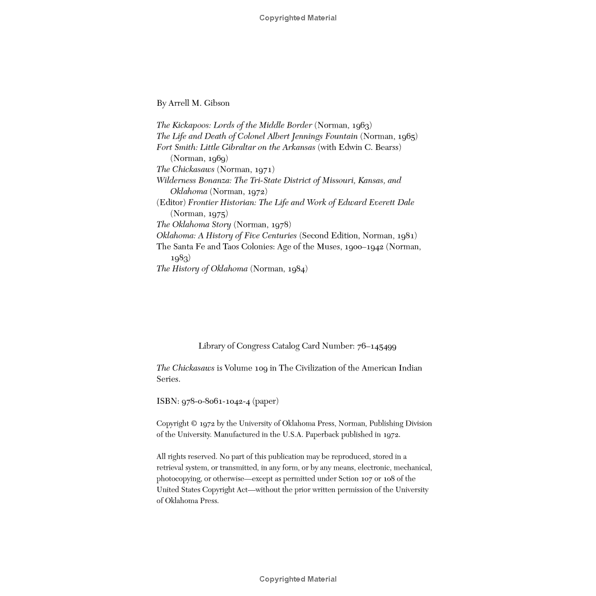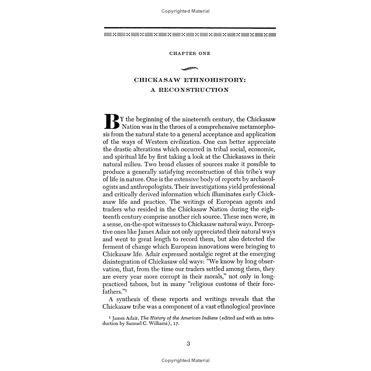 Against an ethno-historical background, the author relates the story of the Chickasaws from their first recorded contacts with Europeans in the lower Mississippi Valley in 1540 to final dissolution of the Chickasaw Nation in 1906.