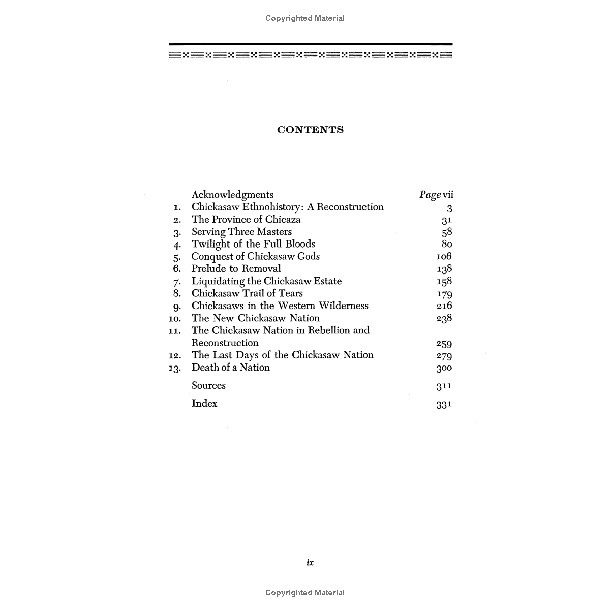 For 350 years the Chickasaws- one of the Five Civilized Tribes- made a sustained effort to preserve their tribal institutions and independence in the face of increasing encroachments by white men. This is the first book-length account of their valiant-but doomed- struggle.