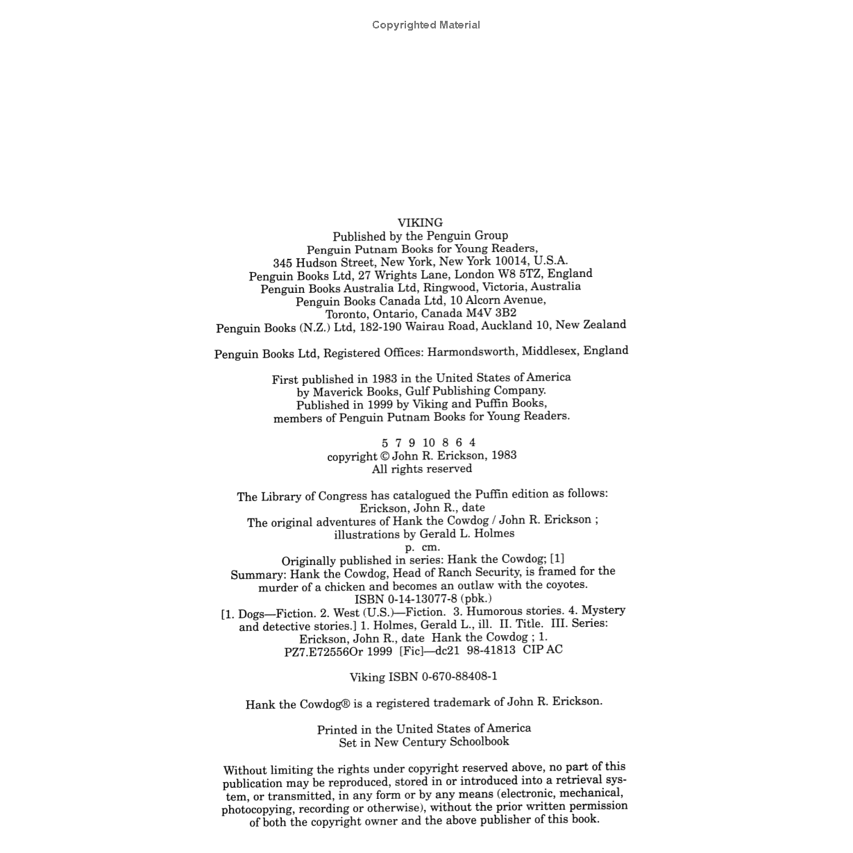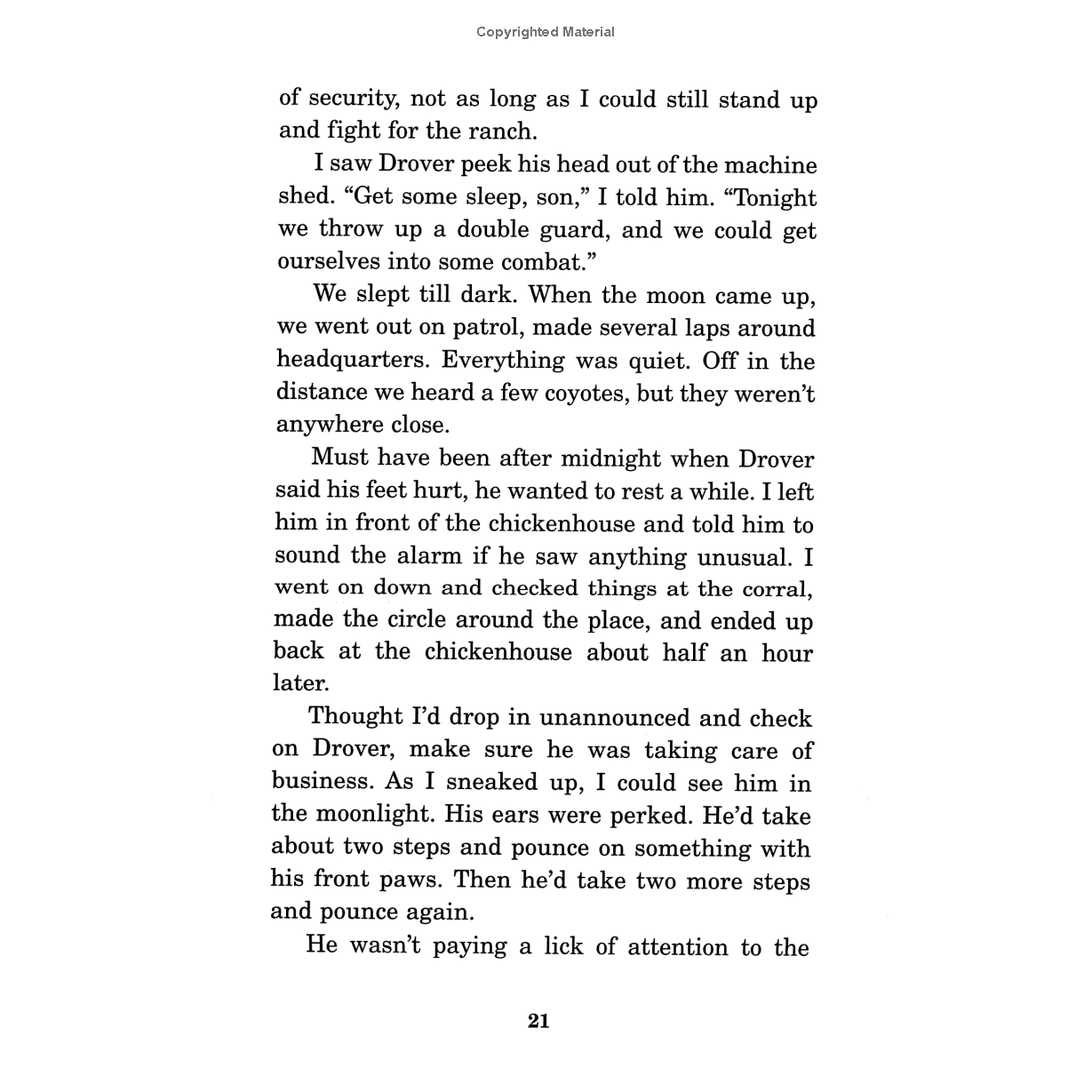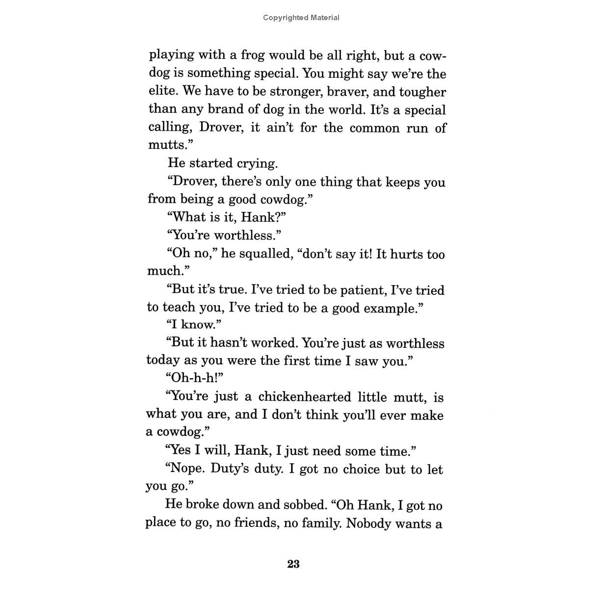 The popular Hank the Cowdog series is based on the humorous antics of the canine Head of Ranch Security. In this first book, Hank and his little buddy, Drover, set out to solve a series of baffling murders on the ranch. Is Hank a suspect? An Outlaw? Can he clear his good name?