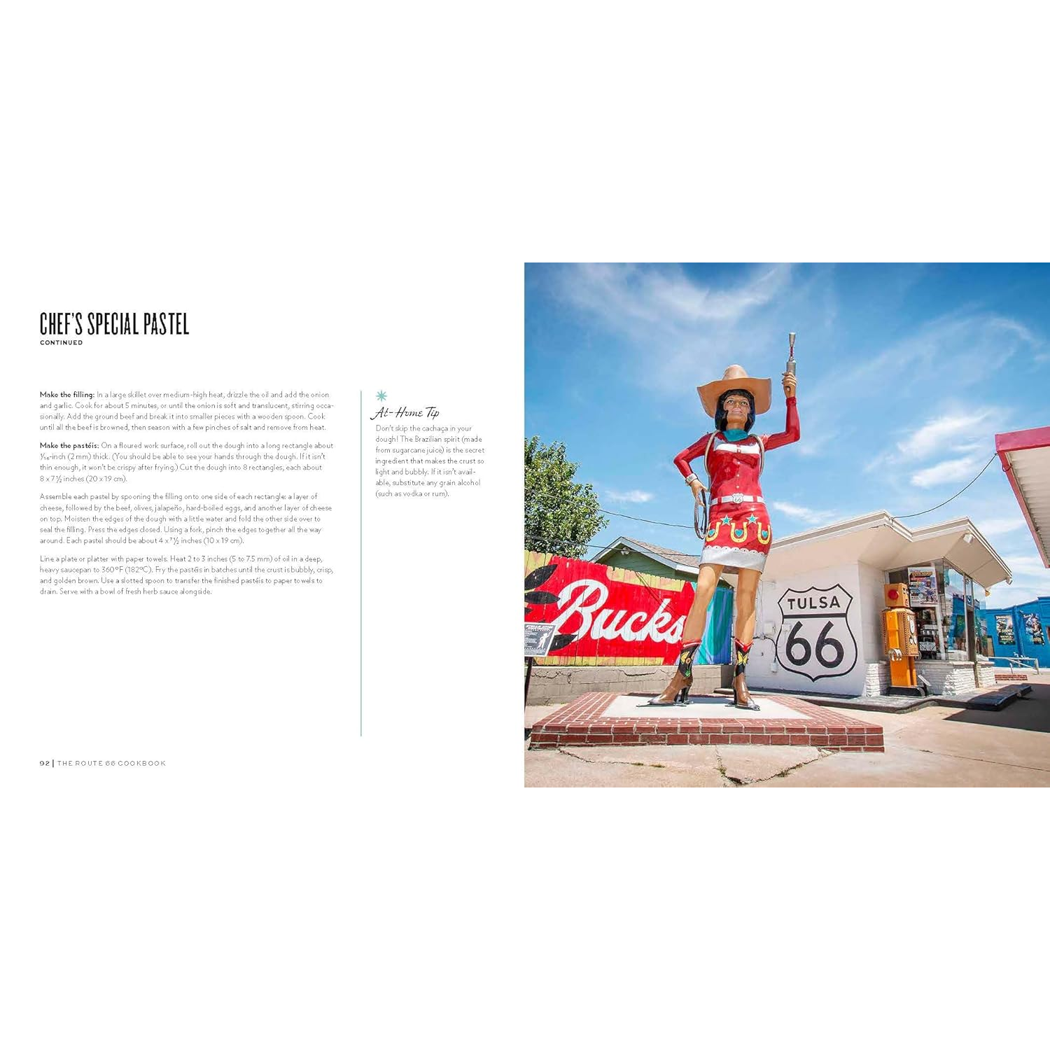 Throughout its recipes and destinations, The Route 66 Cookbook pays homage to America’s diverse cultural history. Of course, there are recipes for a variety of standard American fare, such as diner food, burgers, and multiple styles of barbecue, but German, Mexican, Asian, Indigenous, and fusion foods are also included: