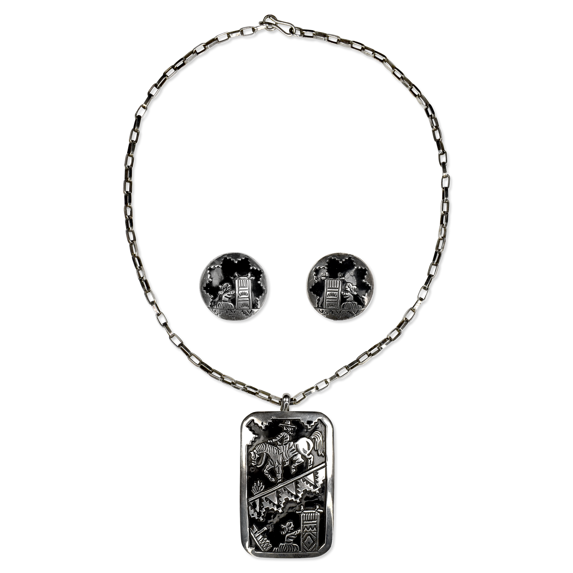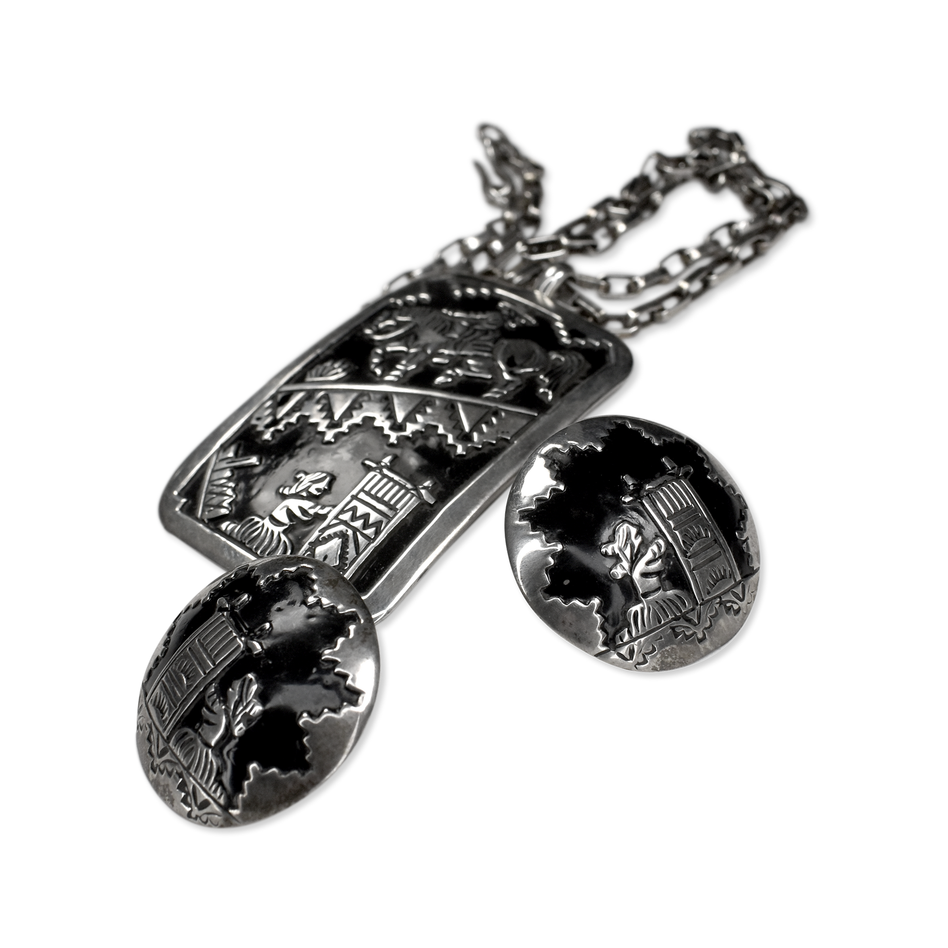 The Weaver's Journey Silver Overlay Storyteller Necklace & Earring Set by James Lee Jr.