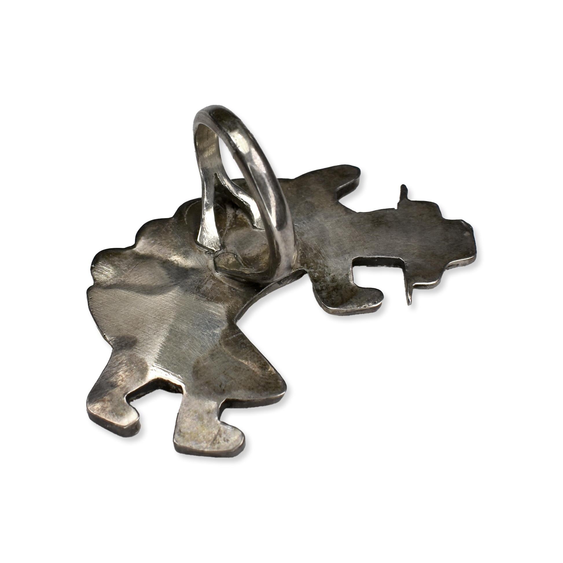 The bold figure design, framed by sterling silver, makes this ring as much a conversation piece as a wearable work of art.