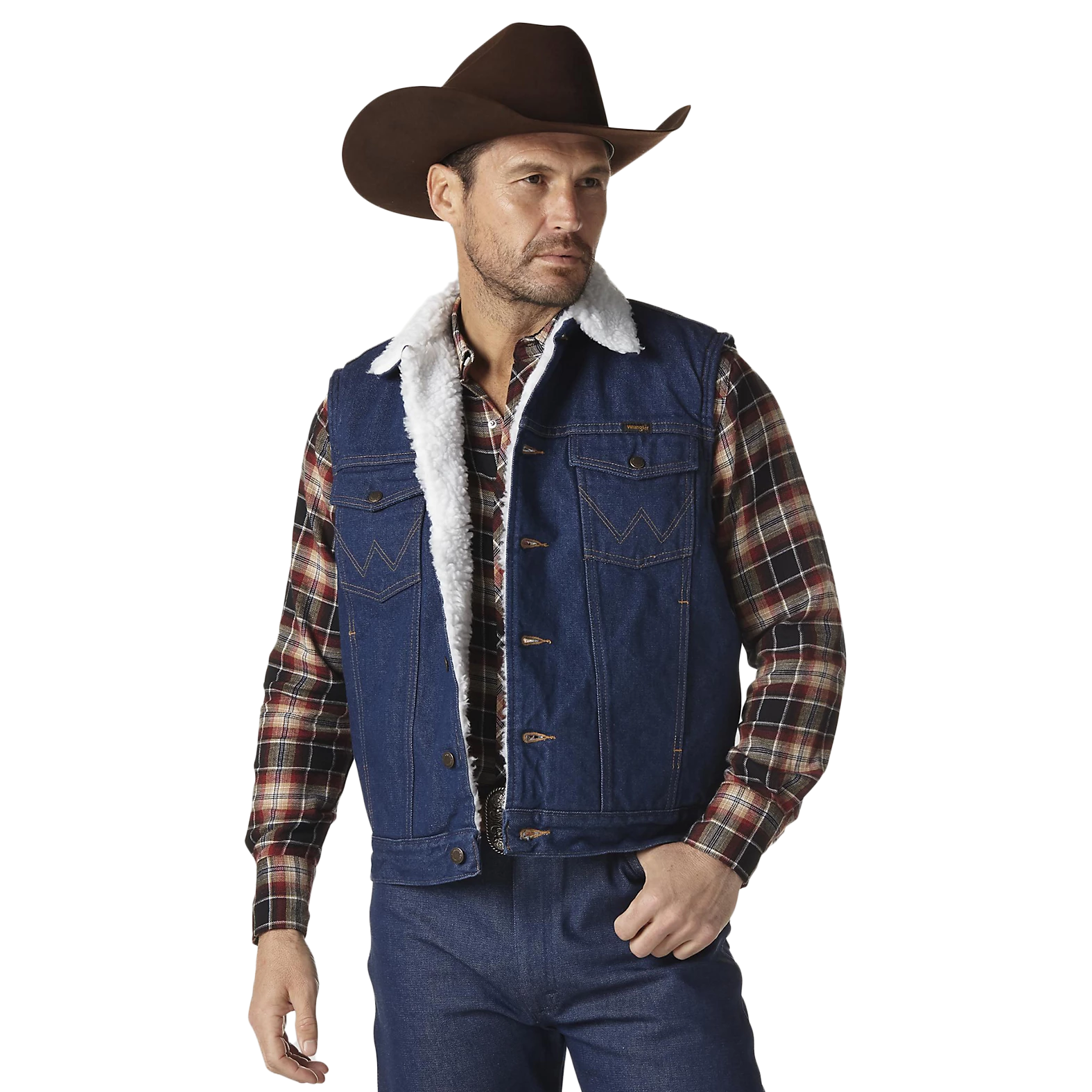 Wrangler Men's Sherpa Lined Prewashed Denim Vest